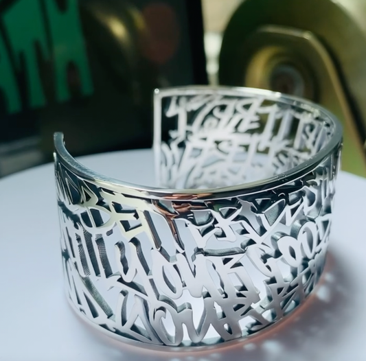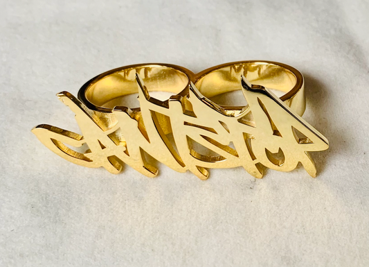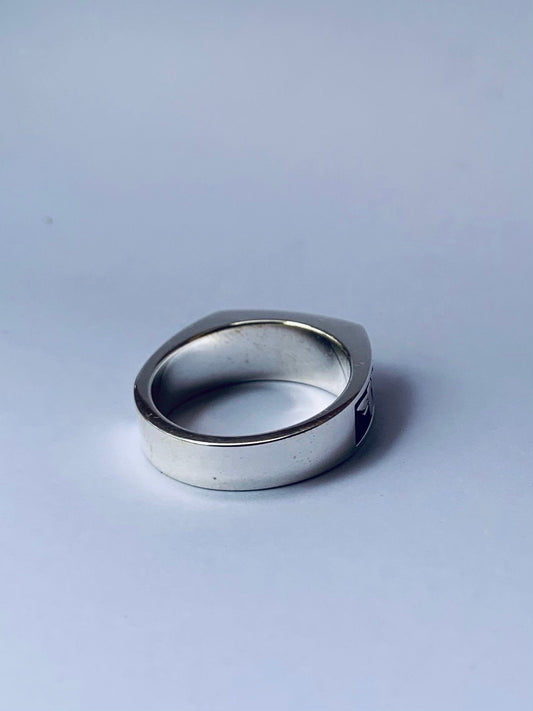 Custom Graffiti Top Inlay Ring in Sterling Silver with plain back